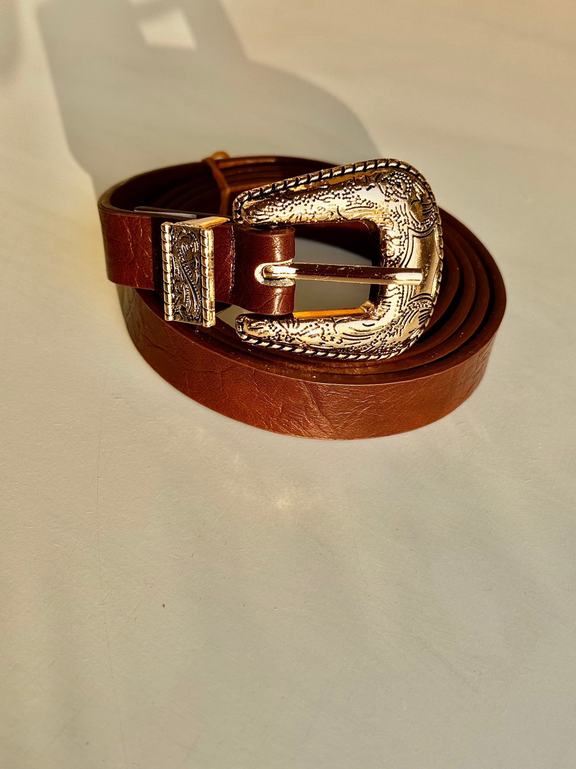 The meticulously engraved detail on the brass hardware immediately elevates any look, bringing a touch of timeless Western romance and bold character to your modern wardrobe.